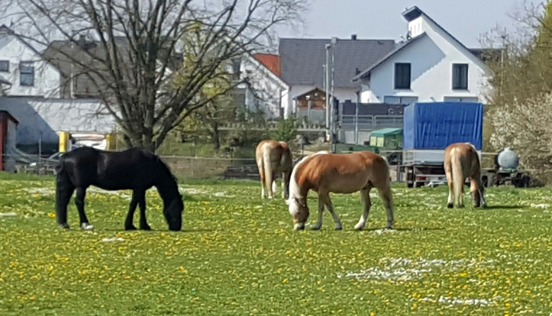 Unsere Pferde leben im Herdenverband. Im Sommer auf der Graskoppel und im Winter in der Offenstallhaltung. Daher sind sie sehr